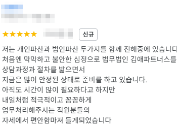 김앤파트너스법인파산후기│앞이 막막하고 참담했는데 너무 감사했습니다 Gallery 김앤파트너스법인파산후기│앞이 막막하고 참담했는데 너무 감사했습니다 의뢰인 후기 김앤파트너스법인파산후기│앞이 막막하고 참담했는데 너무 감사했습니다 “앞이 막막하고 참담했는데, 상담 [...] 김앤파트너스2026-01-13T10:44:37+09:002026년 01월 05일|의뢰인 후기|